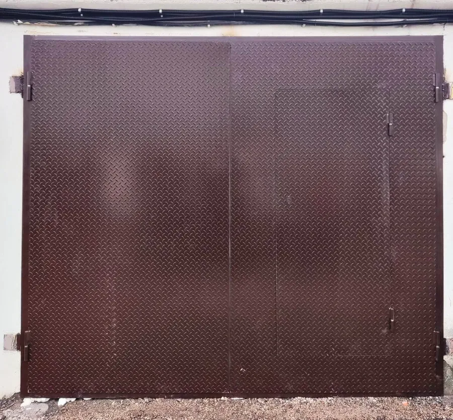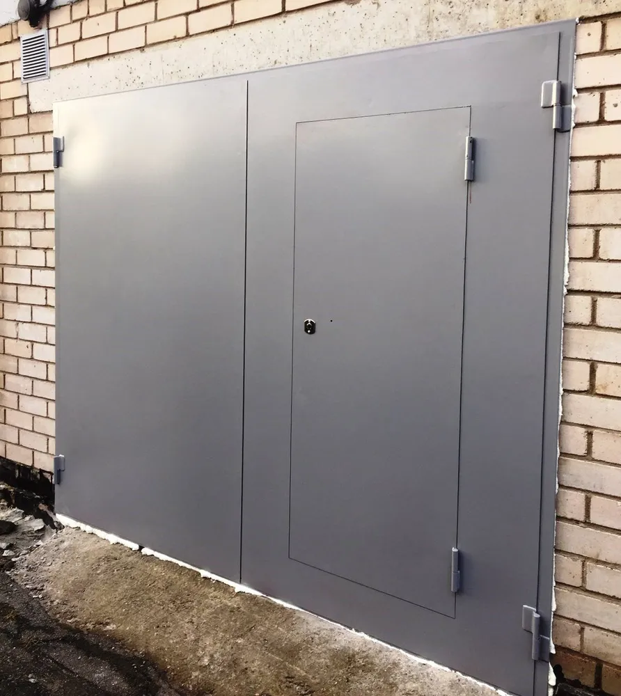 утепленные ворота 2 х листовые с калиткой из листа 2,5мм чечевица