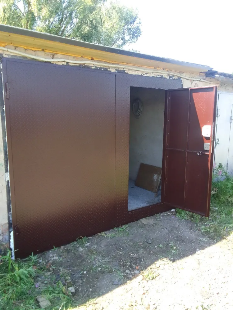 утепленные 2х листовые ворота, покраска молотковая эмаль