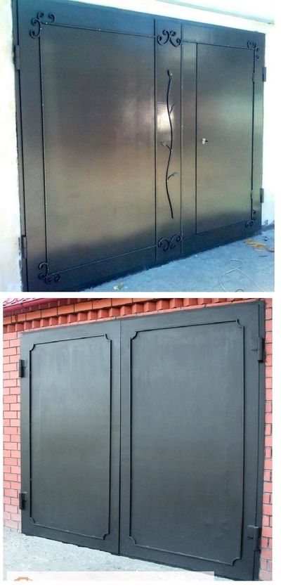 - Материал полотна: снаружи - лист гладкий 2мм, лист рифл. 2,5 мм+ декоративные элементы, внутри лист гладкий 1,2мм