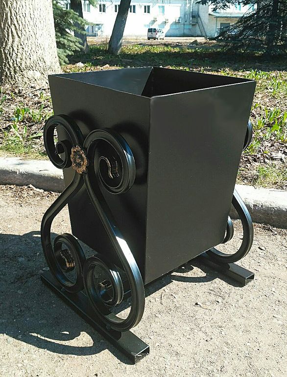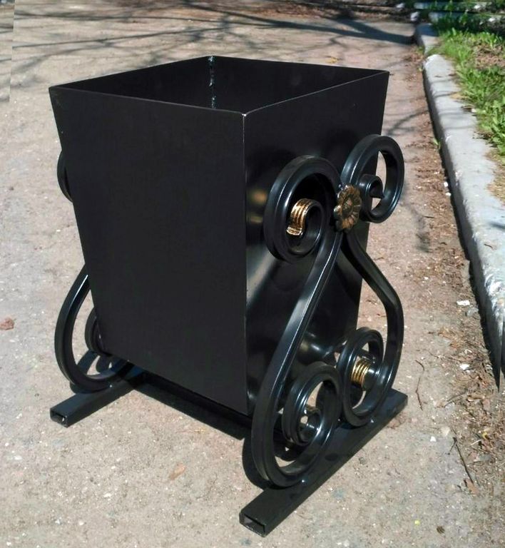 Урна прямоугольная опрокидывающаяся на фигурных опорах.